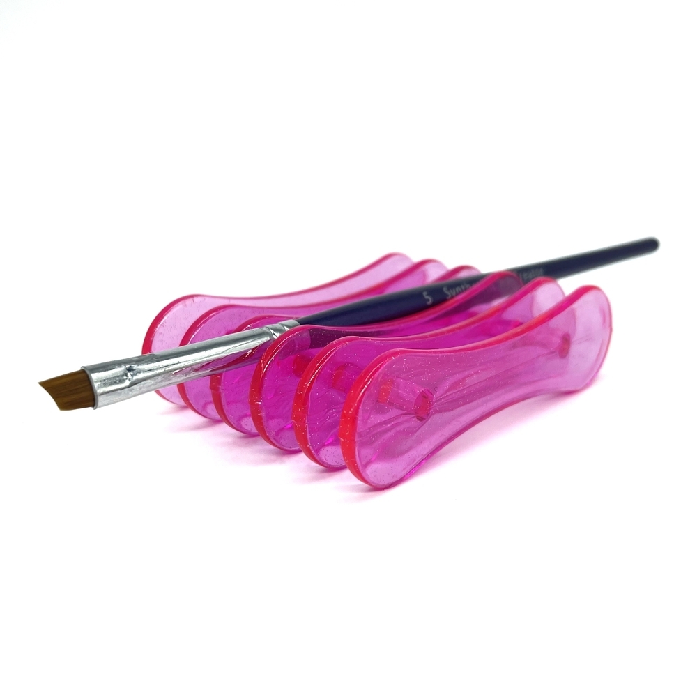 Расположи подставку справа от себя и клади кисти в процессе работы не на стол, а на неё. Так ты не будешь тратить время потом на оттирание геля от стола и точно не запачкаешь свою форму)